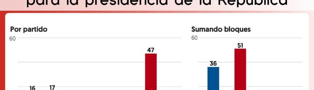 Sumando los bloques, la coalición Juntos Hacemos Historia, cuenta con el 51% de favoritismo, mientras que la oposición hace un 36% y Movimiento Ciudadano únicamente un 8%.