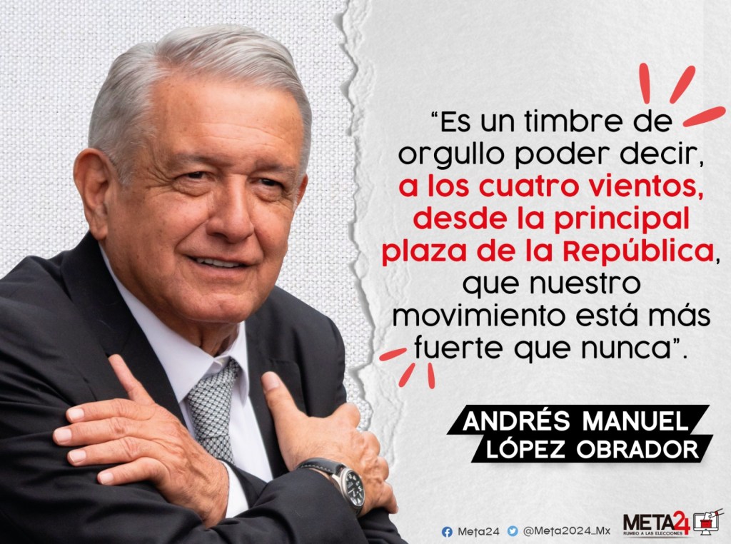 AMLO resaltó el respaldo mayoritario que ha recibido la Cuarta Transformación de la vida pública de México, afirmando que el pacto entre el Pueblo y su Gobierno se ha consolidado bajo el principio de atender y respetar a todos, pero priorizando la ayuda a los pobres y necesitados. Además, destacó que actualmente, al menos 30 millones de hogares son beneficiados por un programa de Bienestar que llega directamente a ellos.