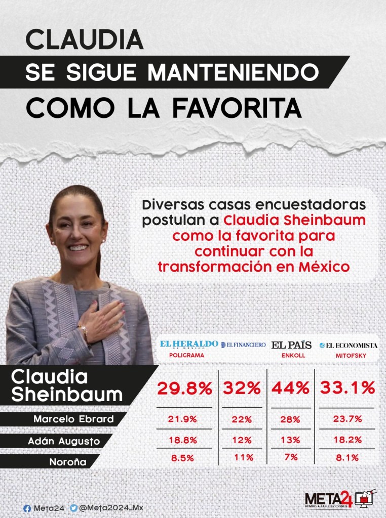 Ella continúa encabezando las encuestas con una gran diferencia. #EsClaudia la opción para representar a la tranformación.