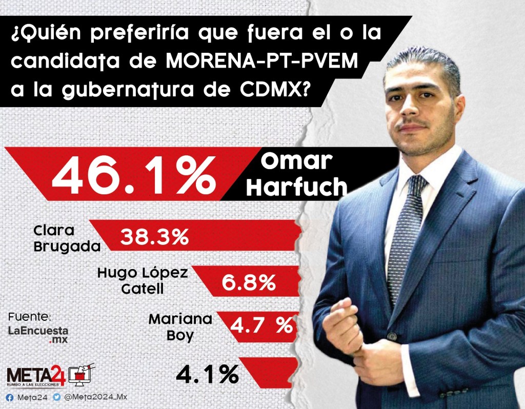 De acuerdo con los resultados de la encuesta, Harfuch encabeza la preferencia popular con un sólido 46.1%. Este destacado porcentaje refleja el apoyo significativo que ha ganado entre los habitantes de la Ciudad de México, consolidándose como el principal candidato para asumir el cargo de Jefe de Gobierno.