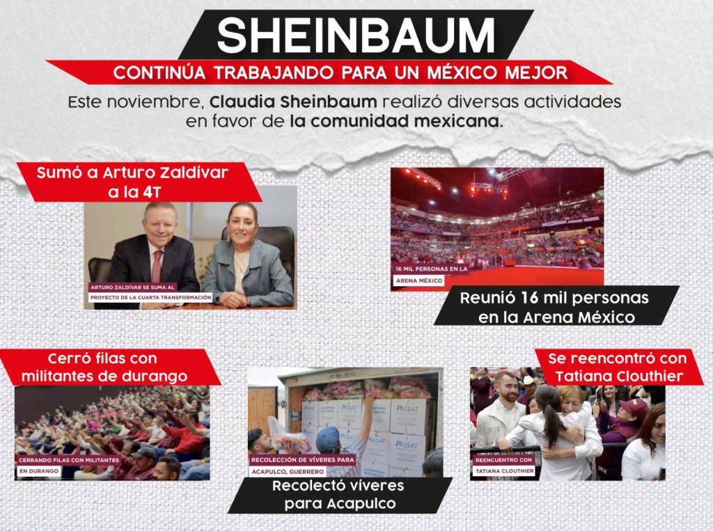 Sheinbaum continúa trabajando para un México mejor. Posted on 24 noviembre, 2023 por El izquierdoso Este mes, Claudia Sheinbaum reforzó el movimiento de la transformación, realizando varias actividades. #Meta24 Comparte esto: Compartir en X (Se abre en una ventana nueva) X Comparte en Facebook (Se abre en una ventana nueva) Facebook Me gusta Cargando... Relacionado