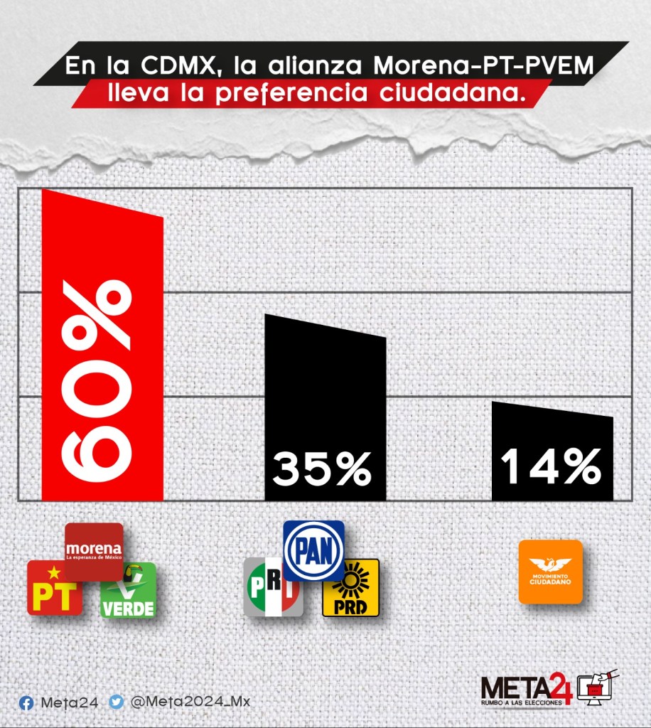 #ClaraBrugada, representado a la alianza de #Morena, #PT y #PartidoVerde, se lleva la preferencia electoral rumbo a la elección por la Jefatura de Gobierno de la #CDMX.